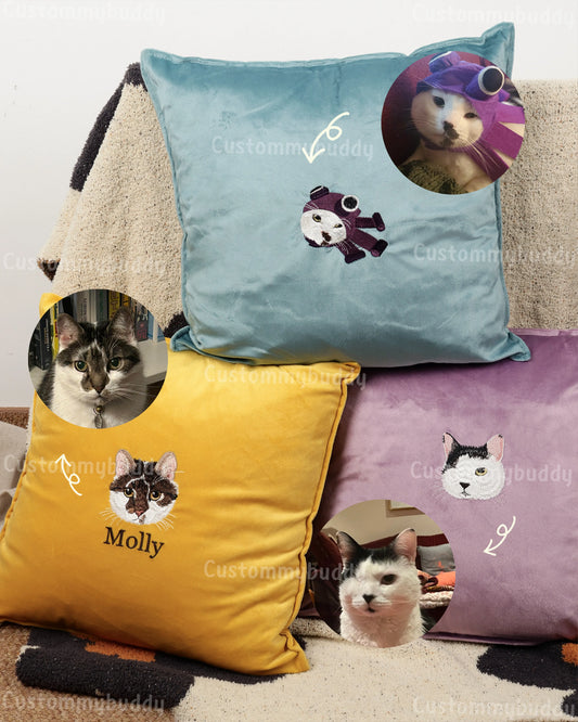 Custom Embroidered Pet Portrait Velvet Cushion