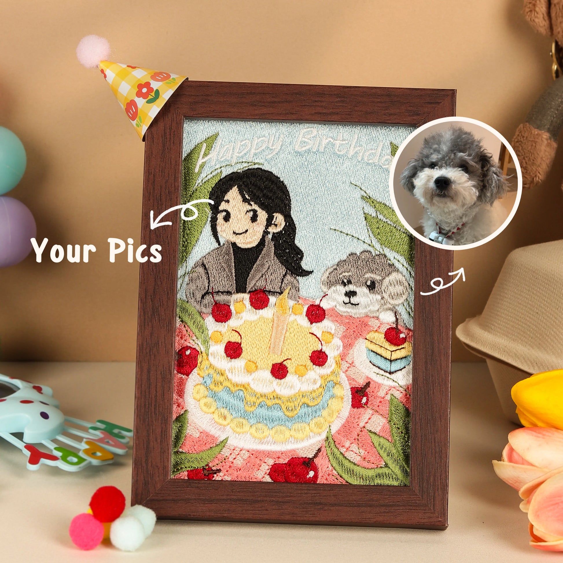 Celebrate the unique charm of your furry friend with this beautifully handcrafted custom embroidered pet portrait frame. Whether you're remembering a beloved companion or gifting a one-of-a-kind keepsake, this piece turns your pet’s photo into timeless art.