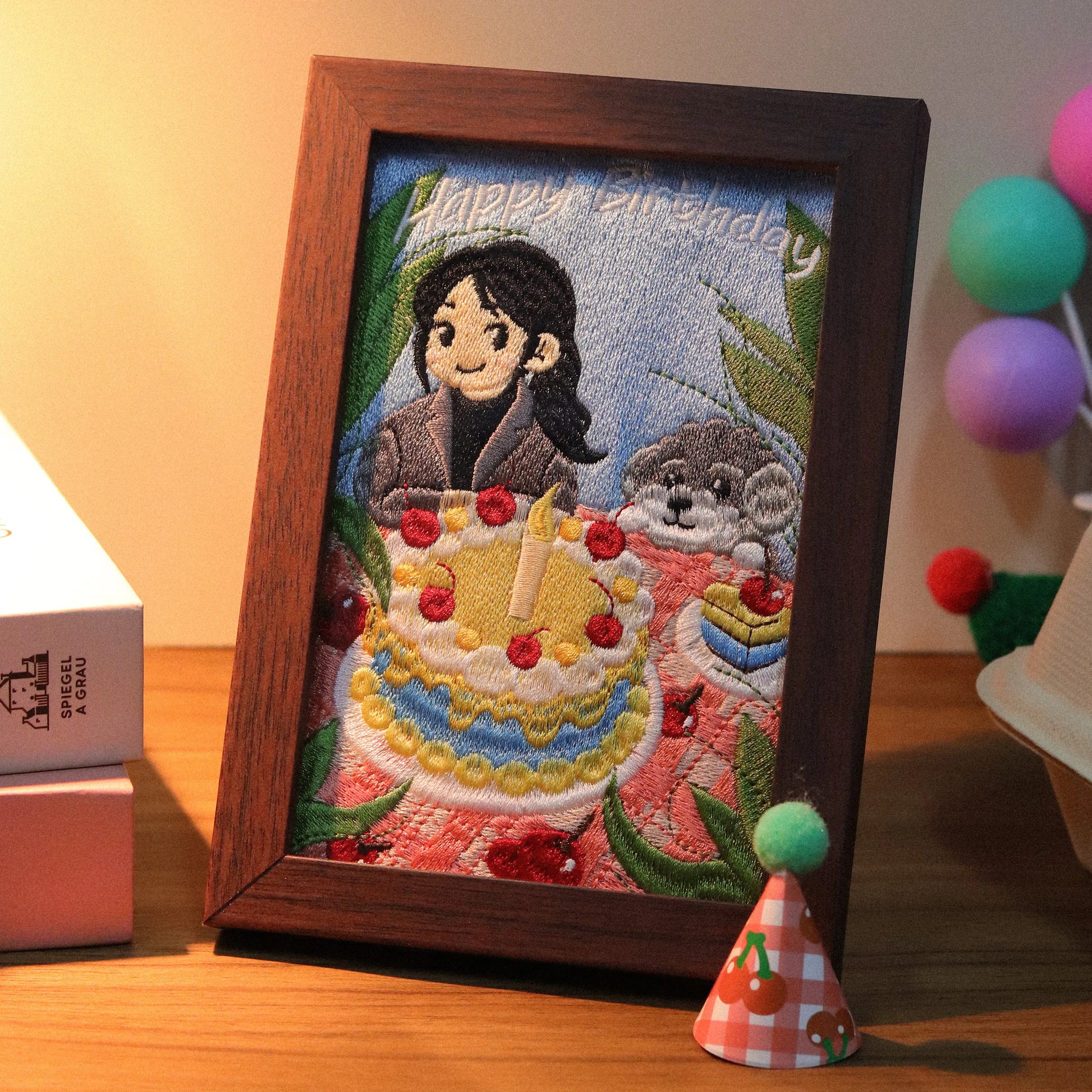 🎂 Birthday Bash – A cheerful and festive scene featuring your pet surrounded by birthday cakes, balloons, and party decorations. Perfect for marking a special day or celebrating your pet’s joyful spirit with color and charm.