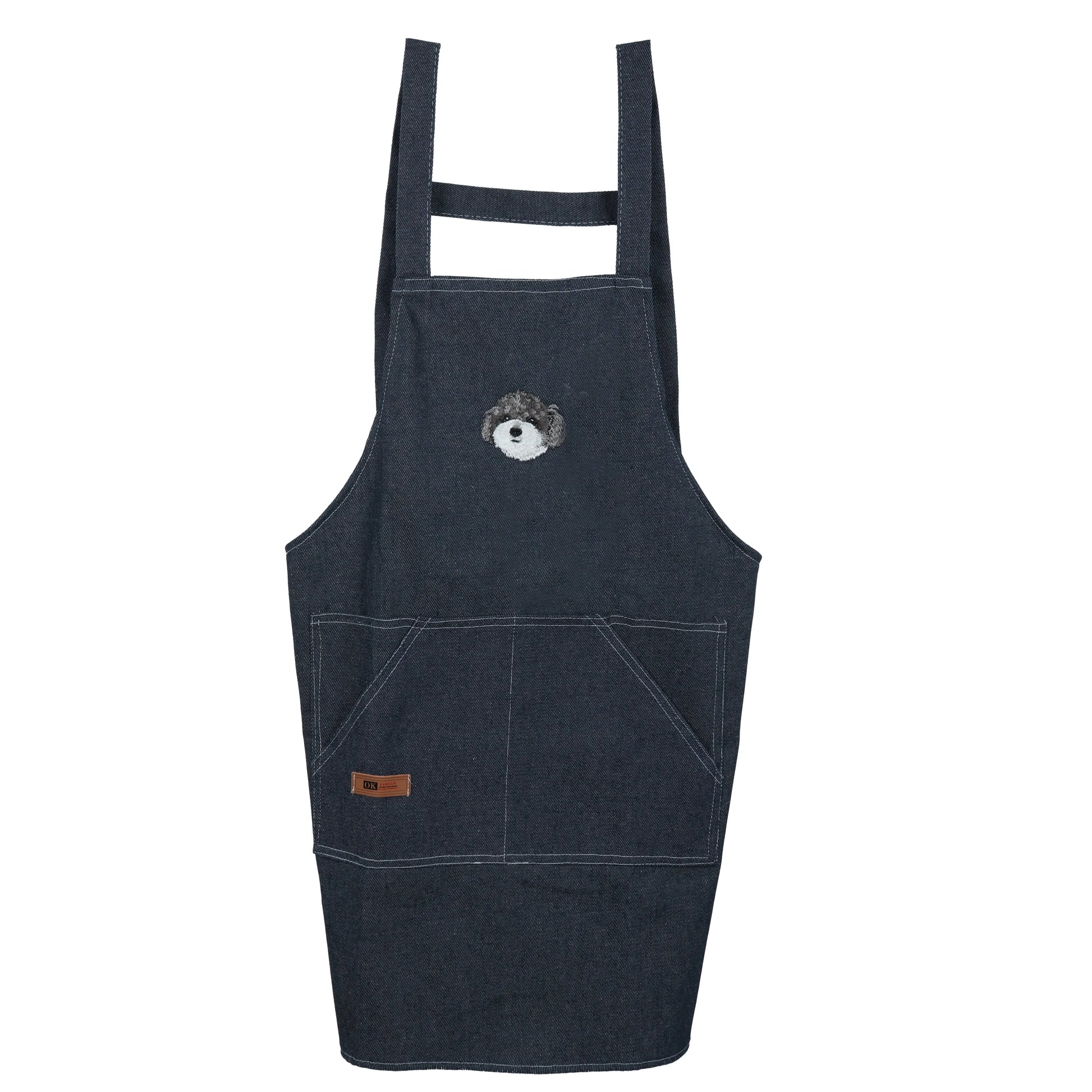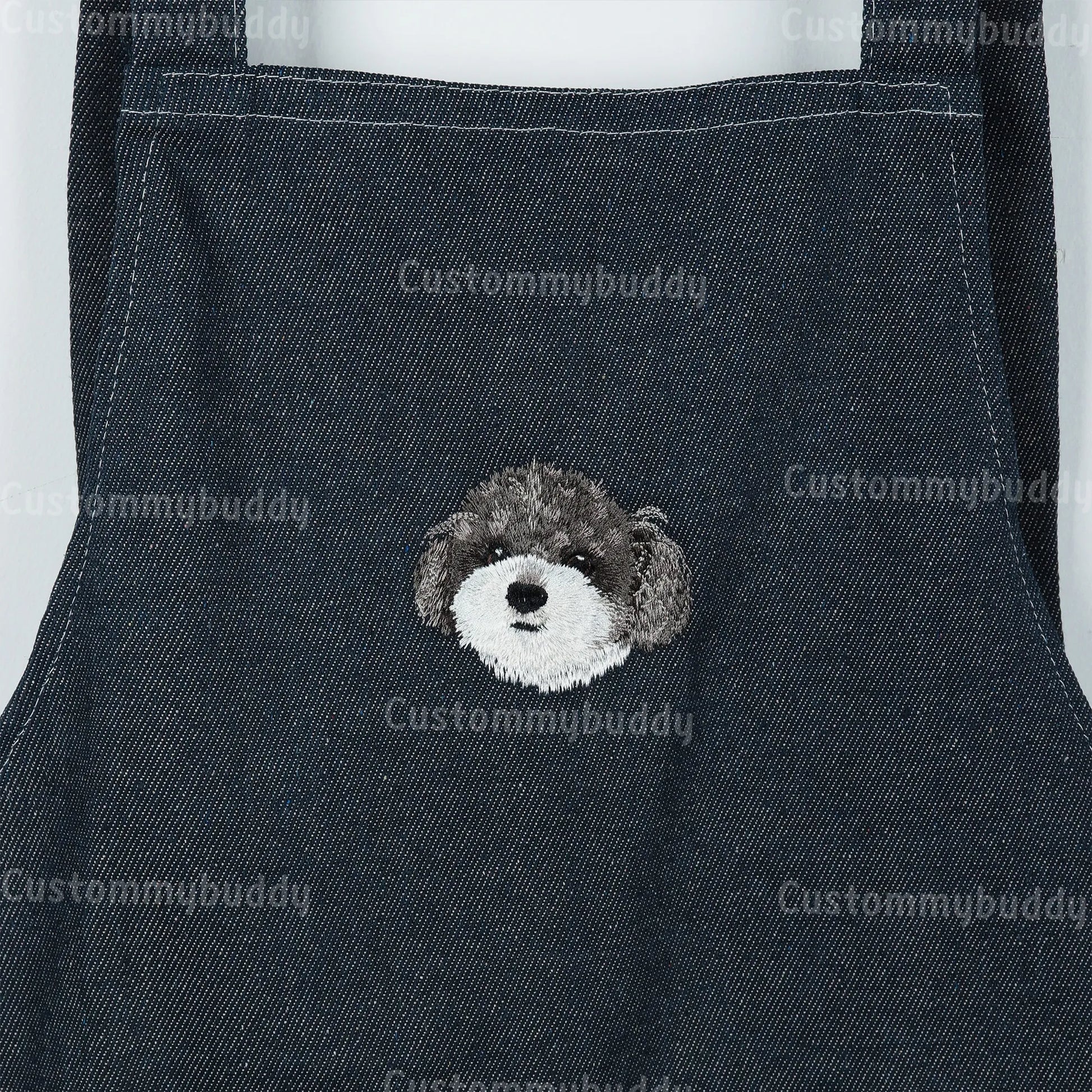 Our custom embroidered denim apron is made to order and personalized with your pet portrait, name, initials, or custom design — perfect for everyday use or a thoughtful gift.