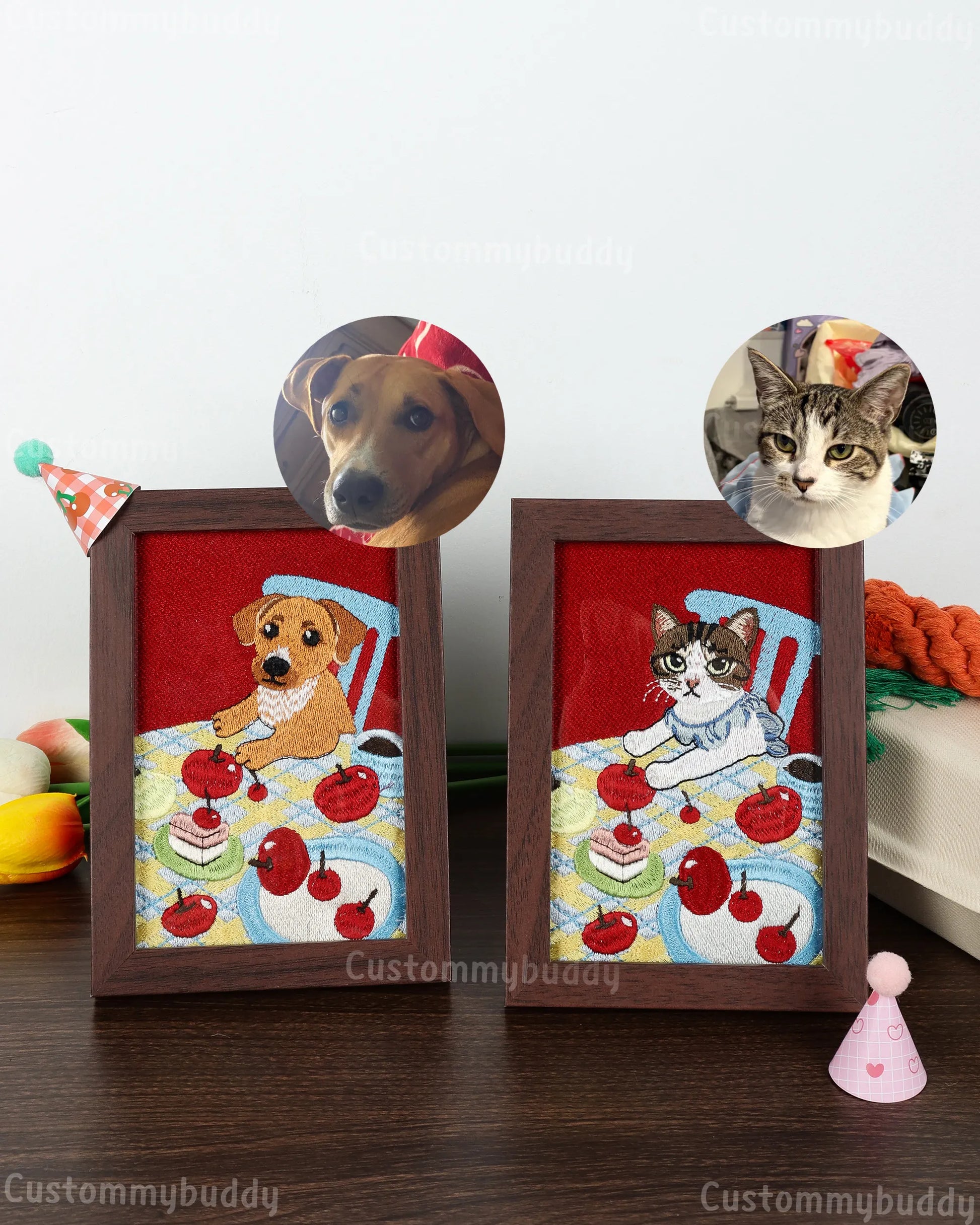 Celebrate the unique charm of your furry friend with this beautifully handcrafted custom embroidered pet portrait frame. Whether you're remembering a beloved companion or gifting a one-of-a-kind keepsake, this piece turns your pet’s photo into timeless art.