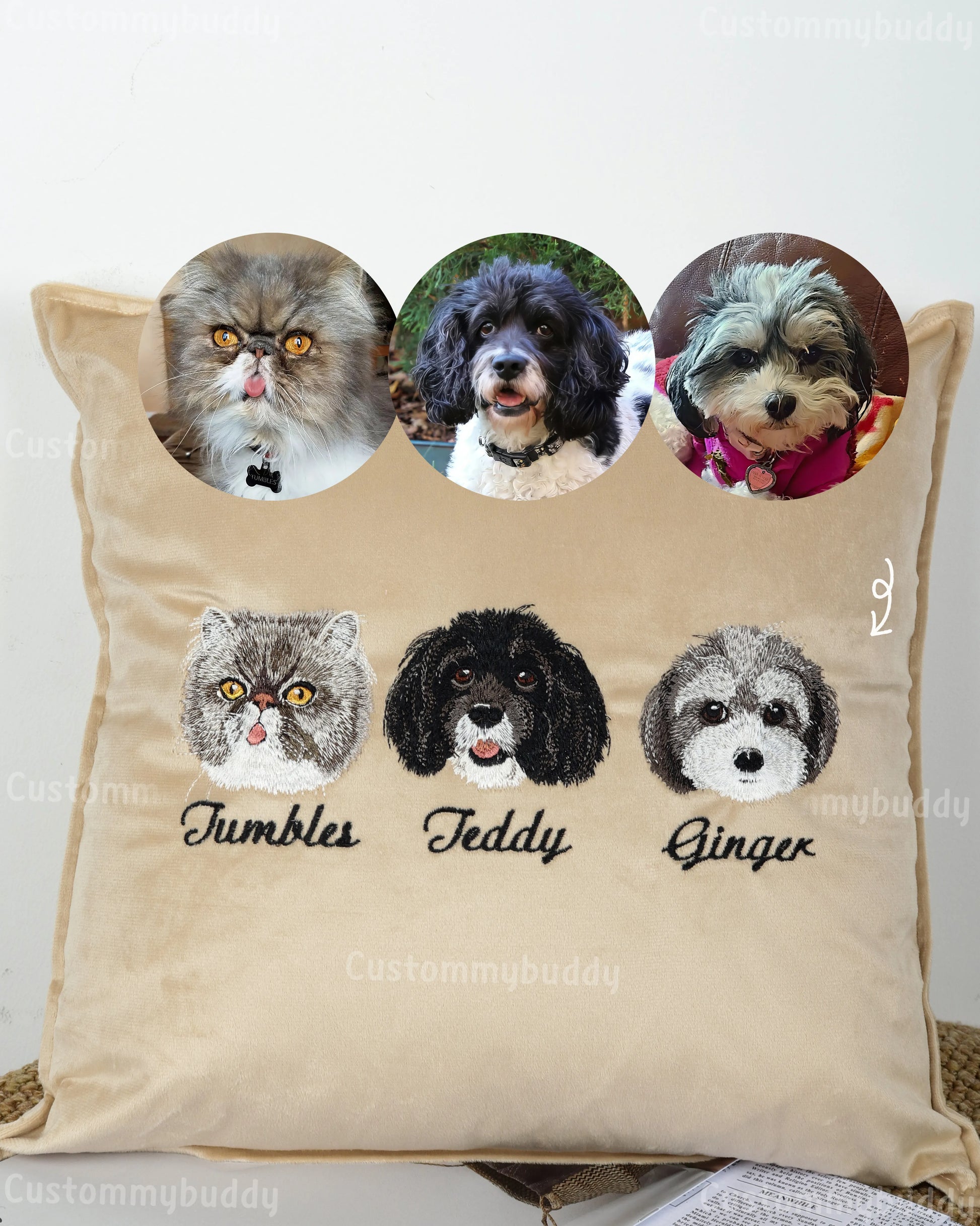 Snuggle up with your beloved pet in a whole new way! Our Custom Embroidered Pet Portrait Velvet Cushion(40*40cm) offers a unique blend of comfort and personal touch to your home decor. Crafted with premium, plush velvet and personalized with fine embroidery of your pet's portrait, this cushion is not just a pillow—it's a piece of art and a perfect way to celebrate your furry friend