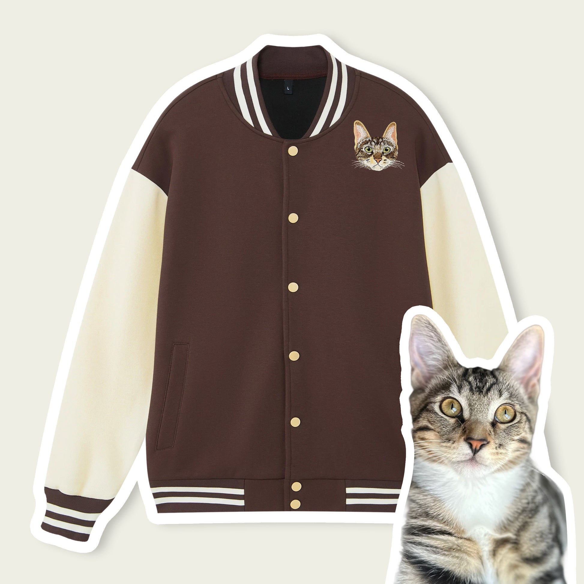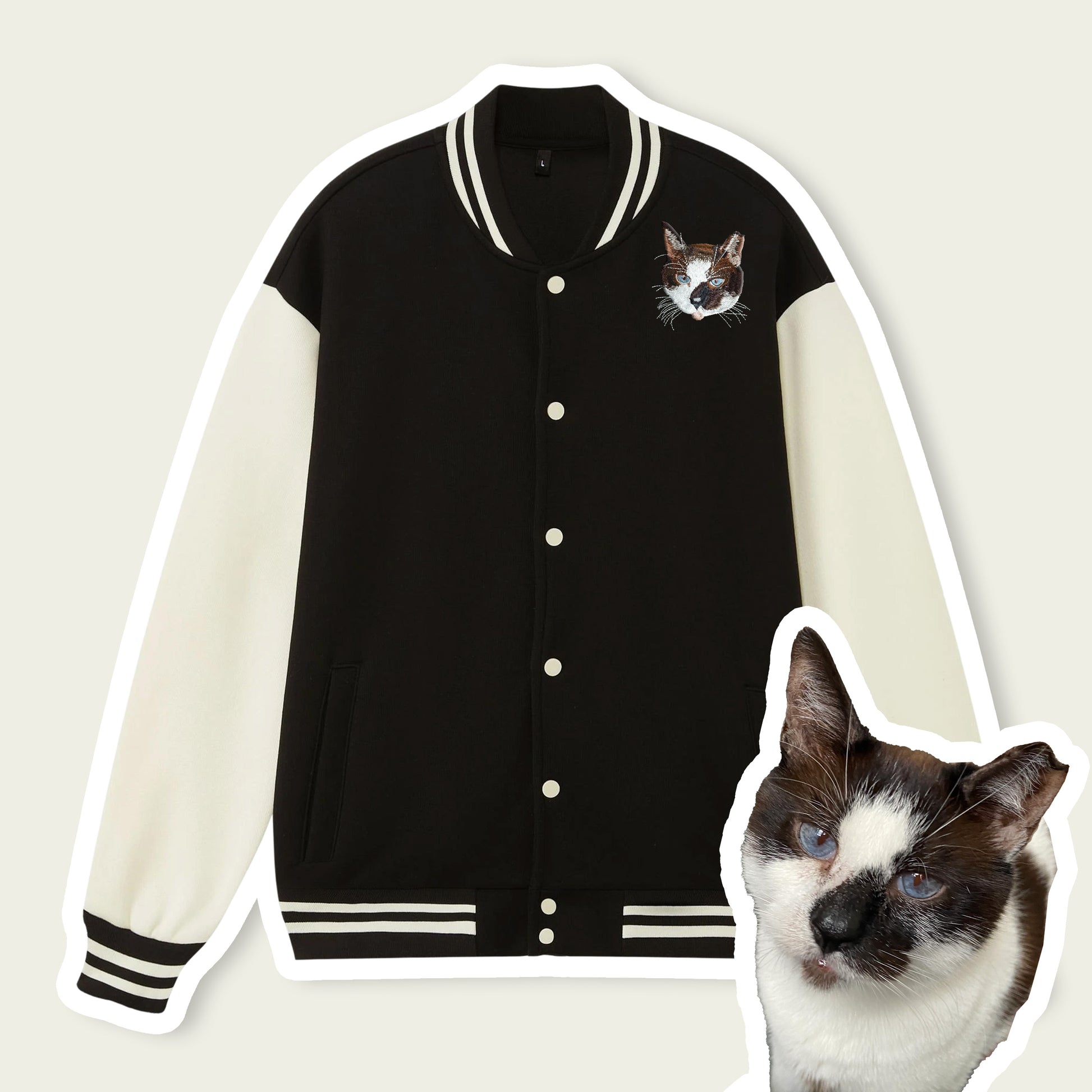 This jacket is perfect for anyone who loves their pets and wants to keep them close. Whether for yourself or as a gift, the Custom Pet Varsity Jacket is a stylish and thoughtful choice. Order yours today and wear your pet's love with pride!