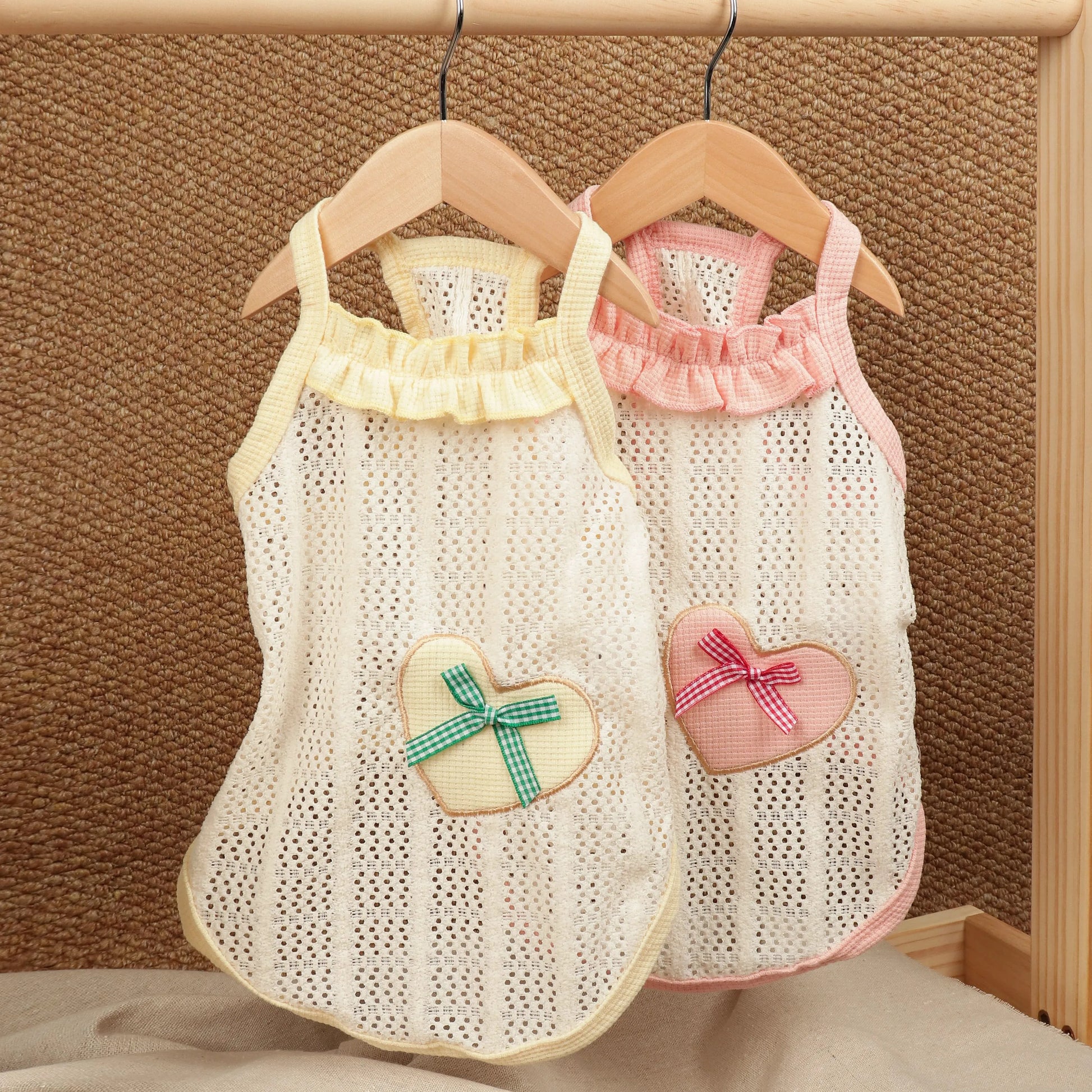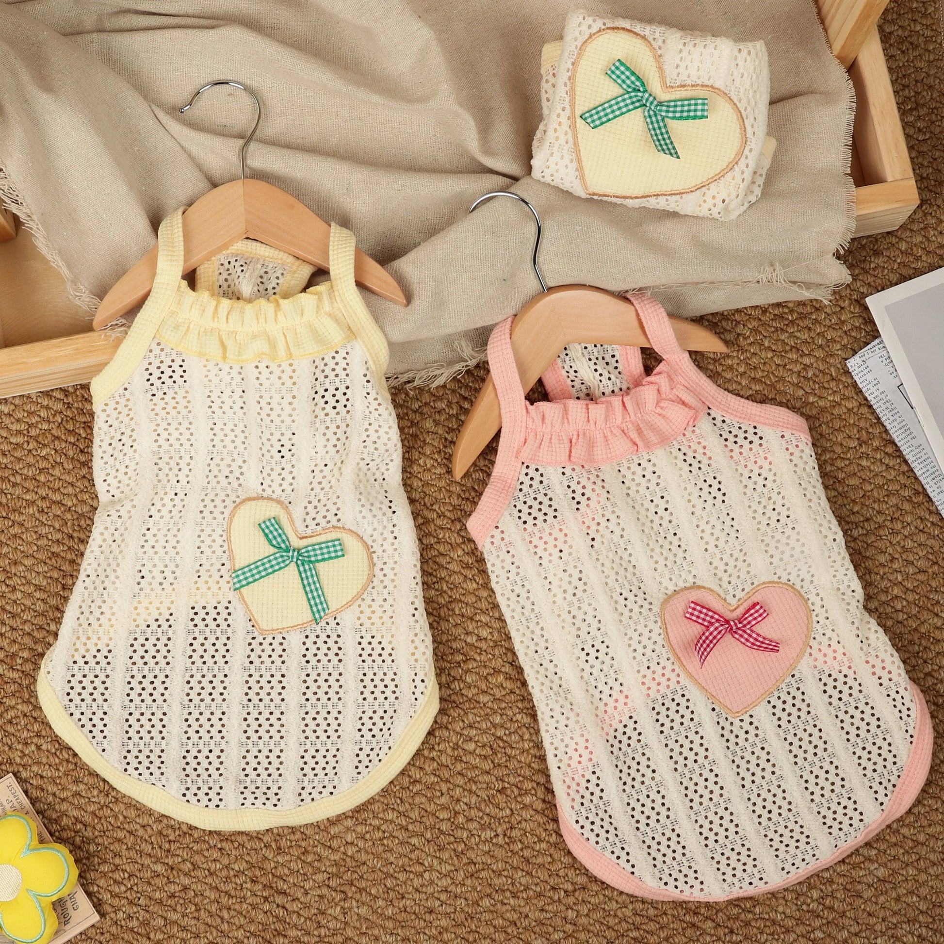 Heart Bow Lace Mesh Dog Dress – Summer Pet Tank Top