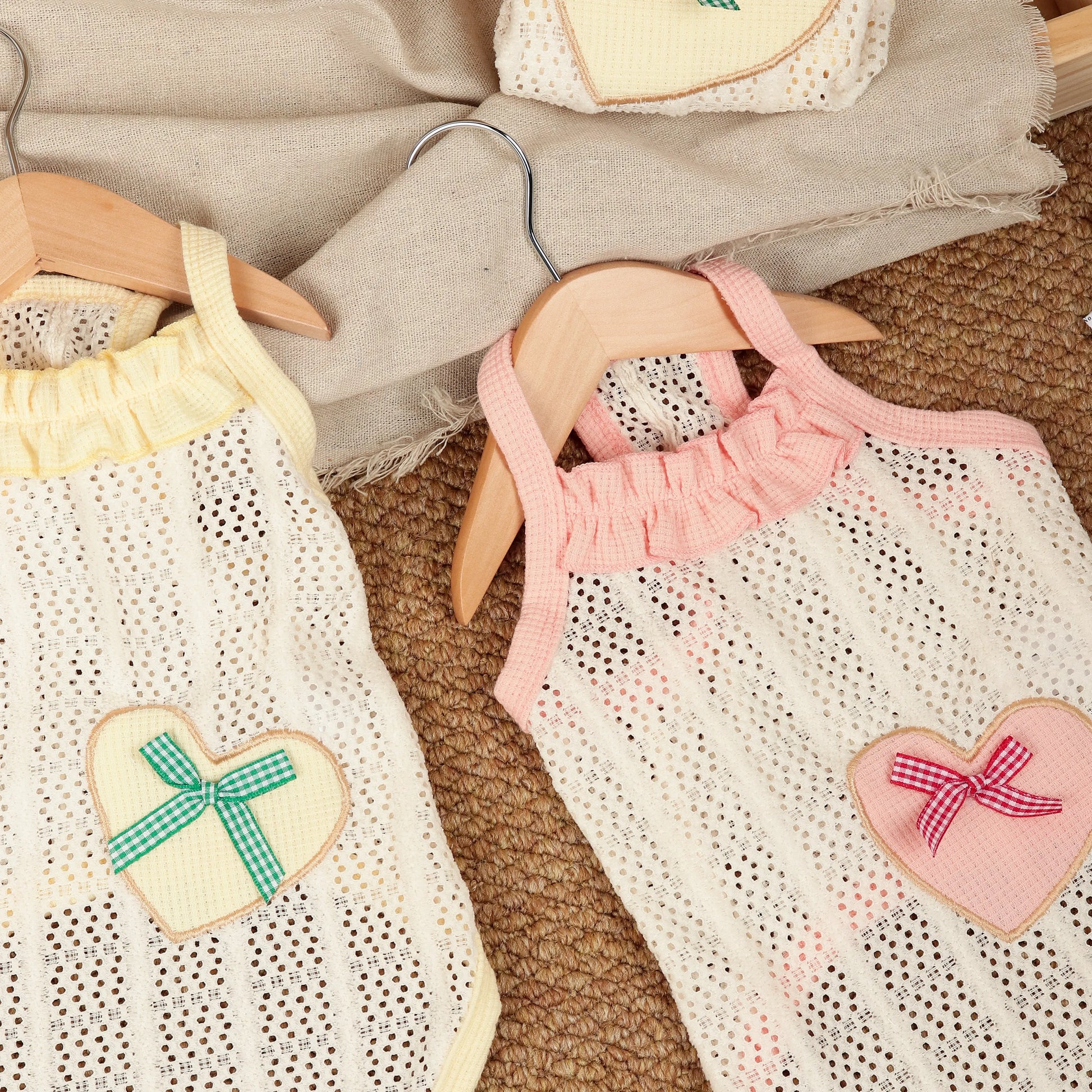Cute Heart Bow Dog Dress – Strappy Summer Outfit for Small Dogs & Puppies