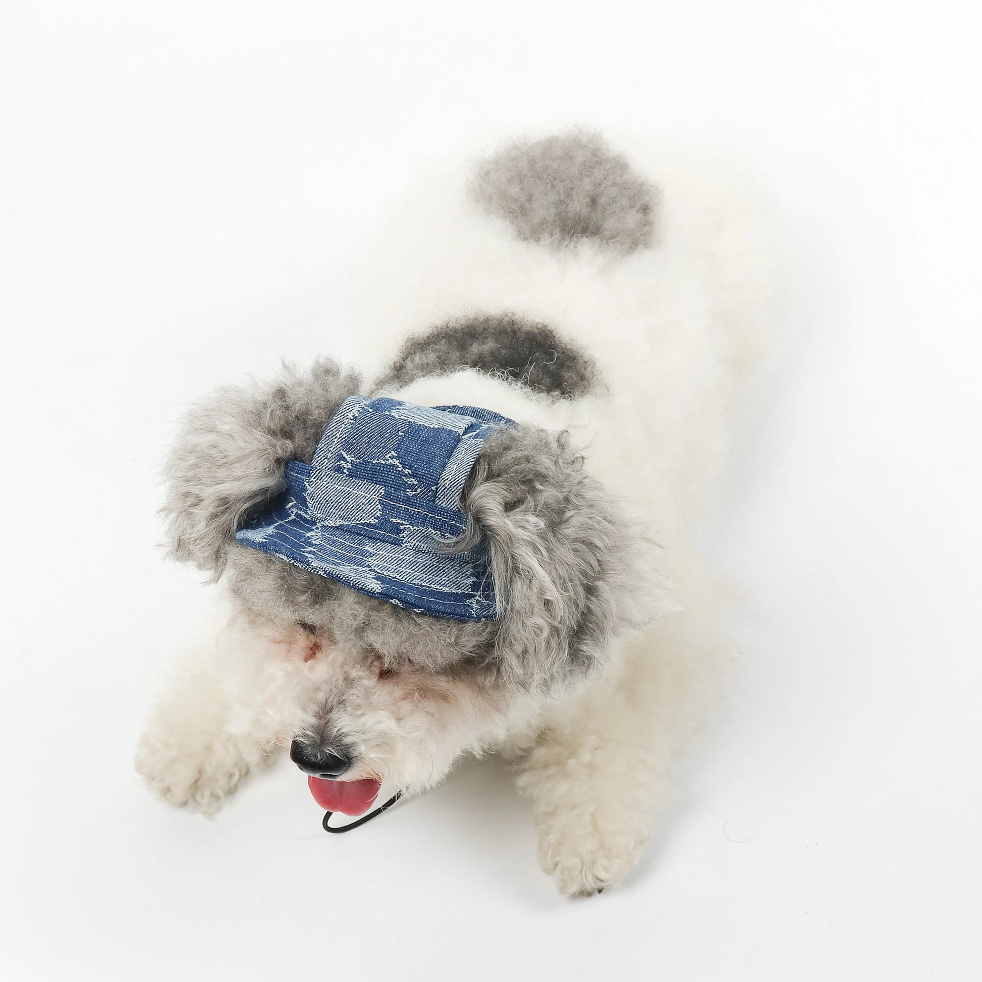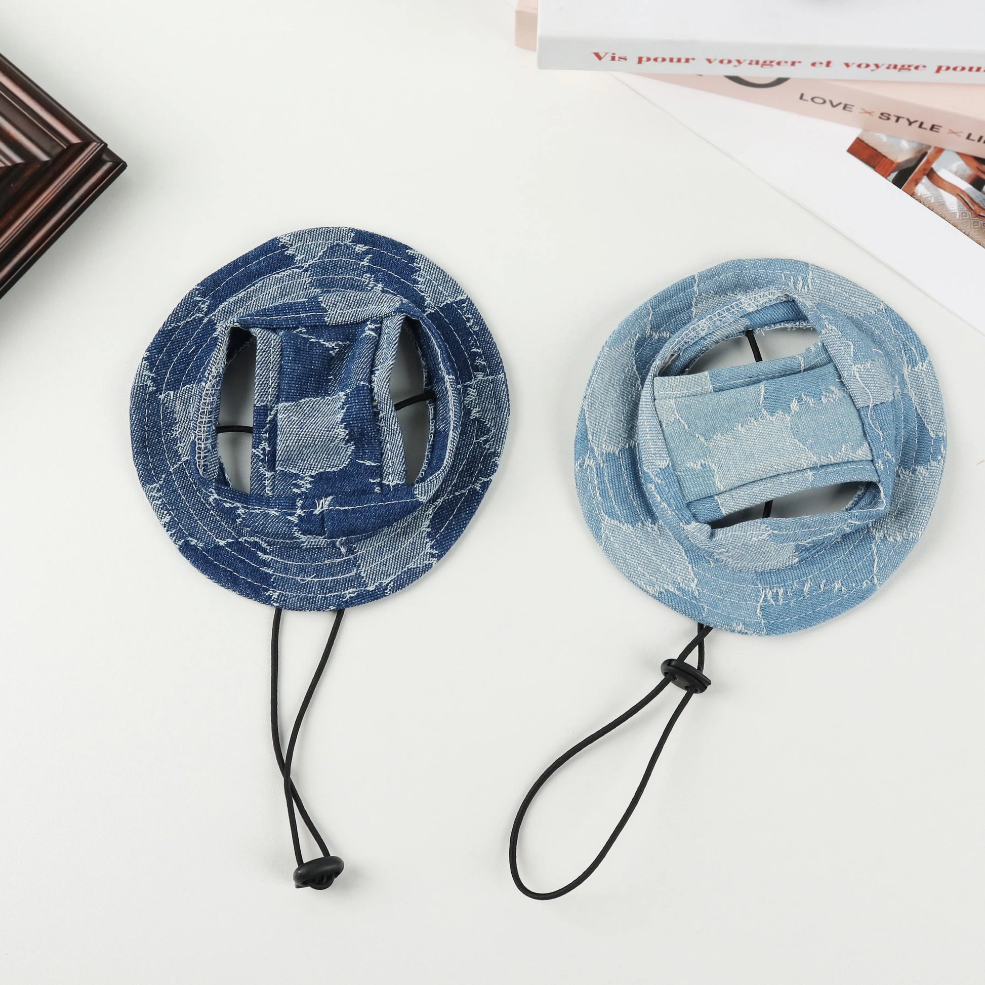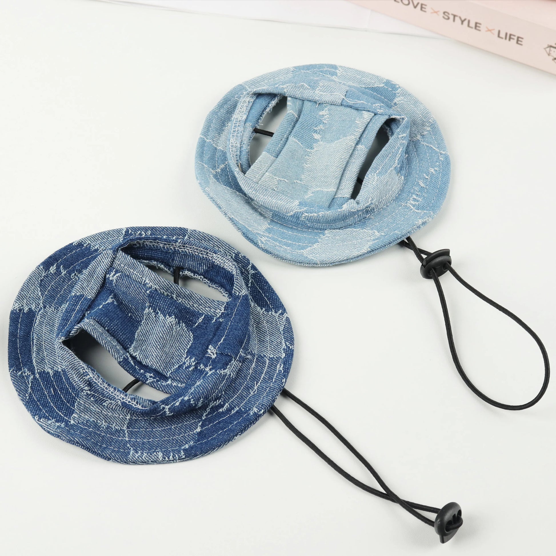 Pet Denim Bucket Hat – Cute Dog Sun Hat with Ear Holes & Adjustable Strap