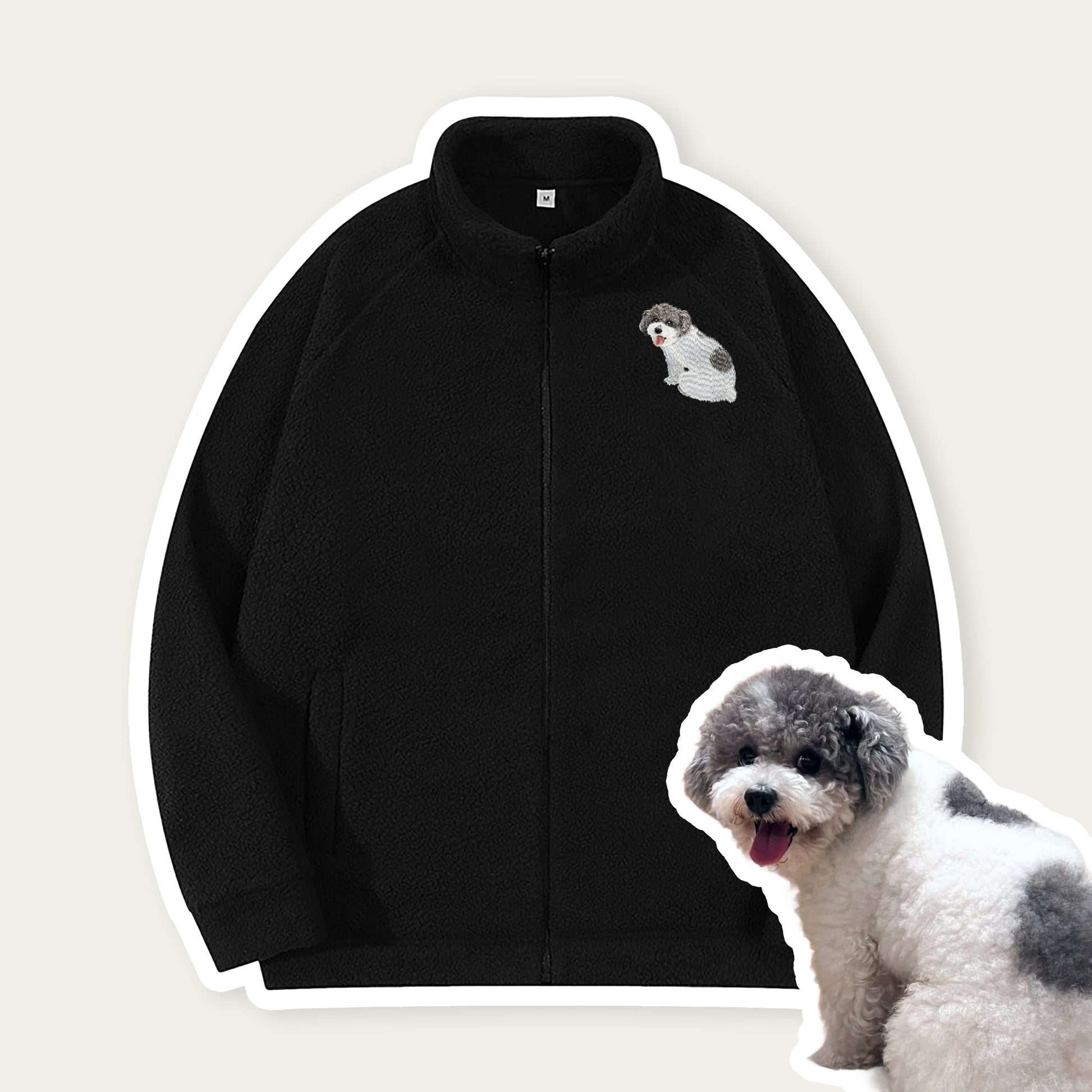 Custom Embroidered Pet Portrait Zip-up Sherpa Jacket
