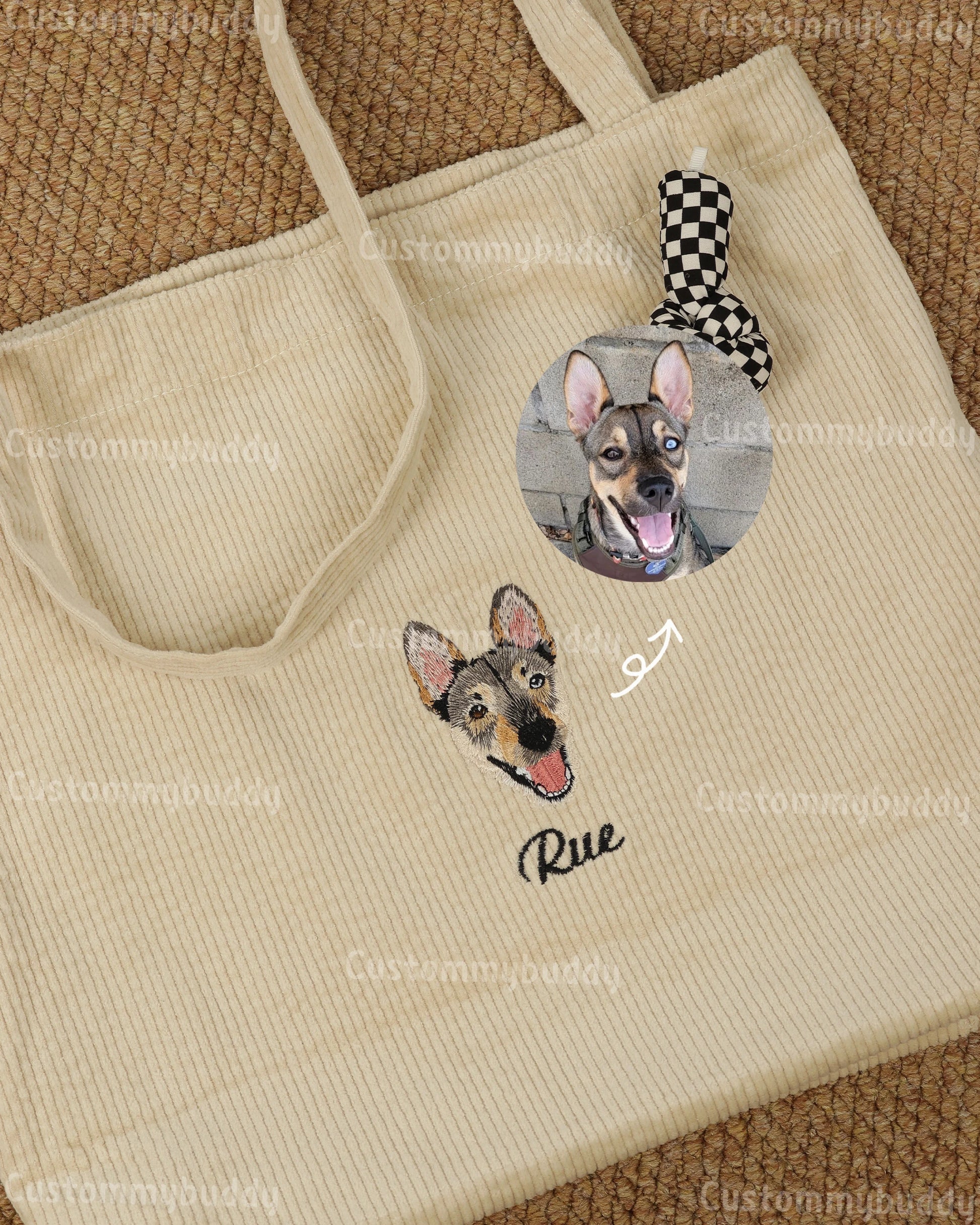 Custom Embroidered Pet Portrait Canvas Tote Bag